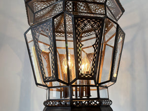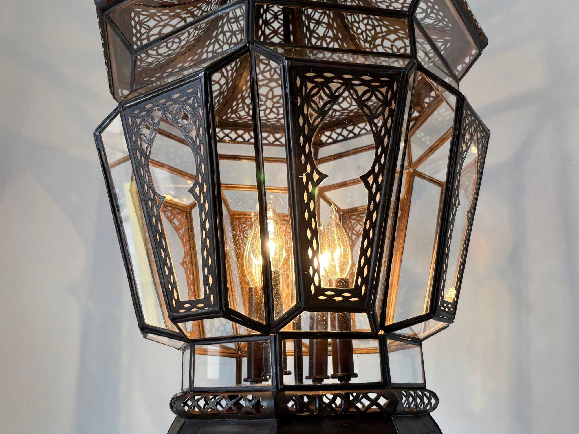 The Moroccan lantern has been rewired in the US with a cluster of 4 candelabra lights.