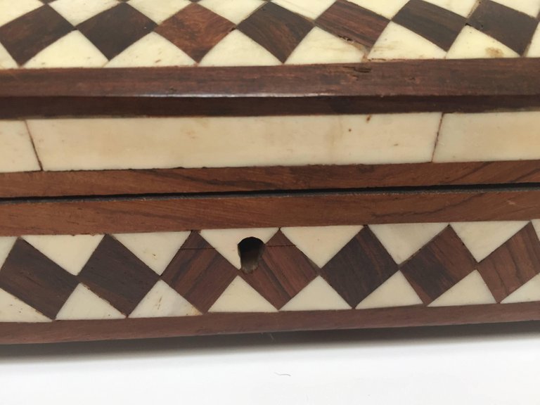 No key, see last picture a tiny piece of inlay is missing on the corner.