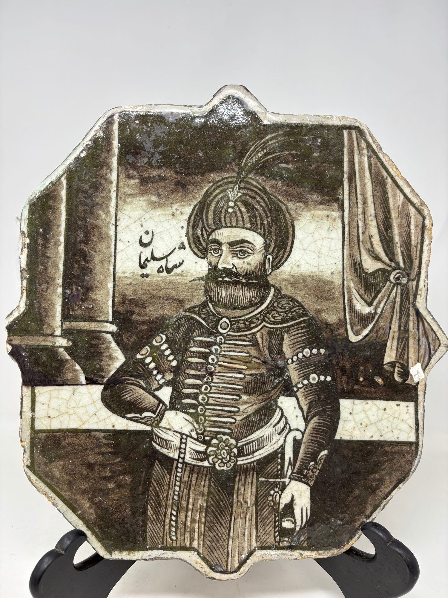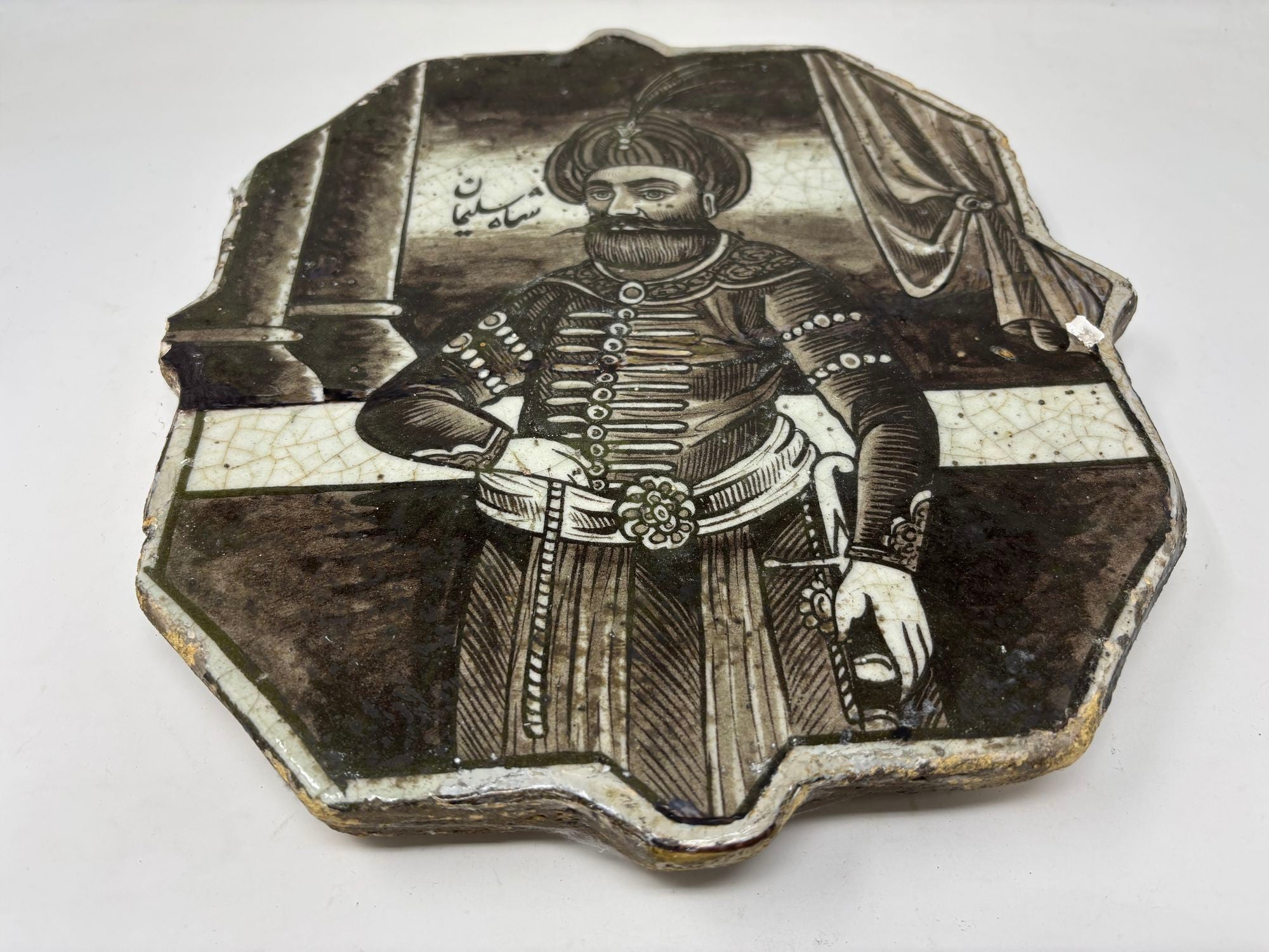 Antique 19th century hand painted Islamic Turkish ottoman ceramic tile.