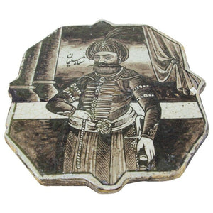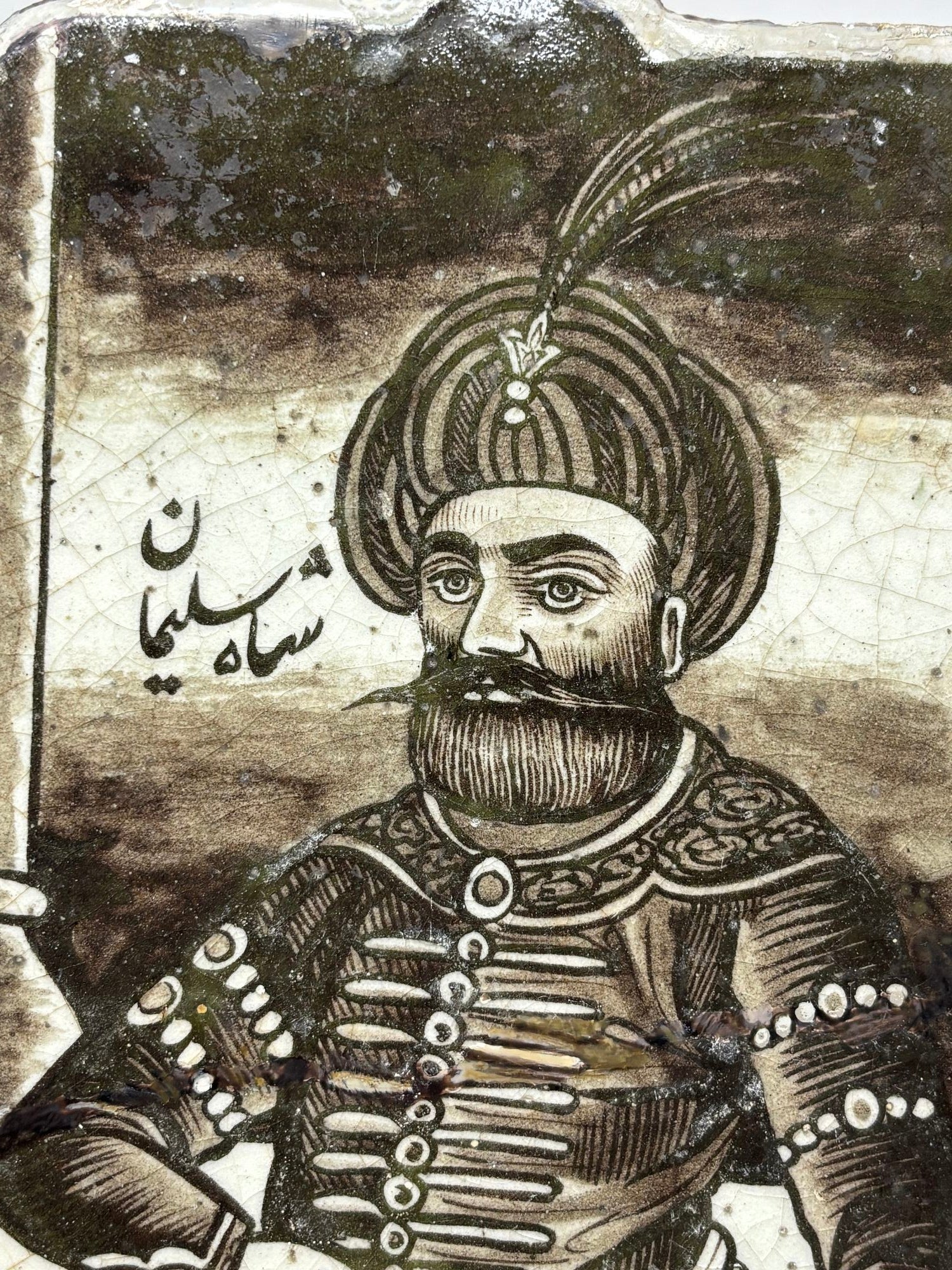 Arabic script on left top corner, " Shah Suleiman" colors are brown, shape is the Salomon eight pointed star.