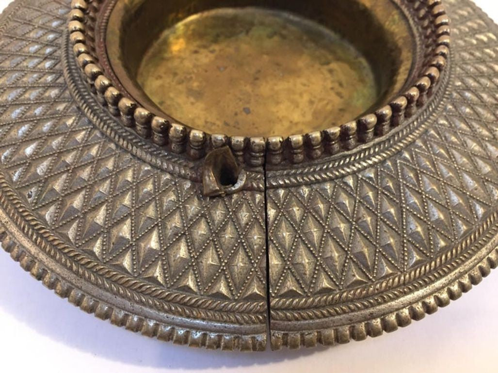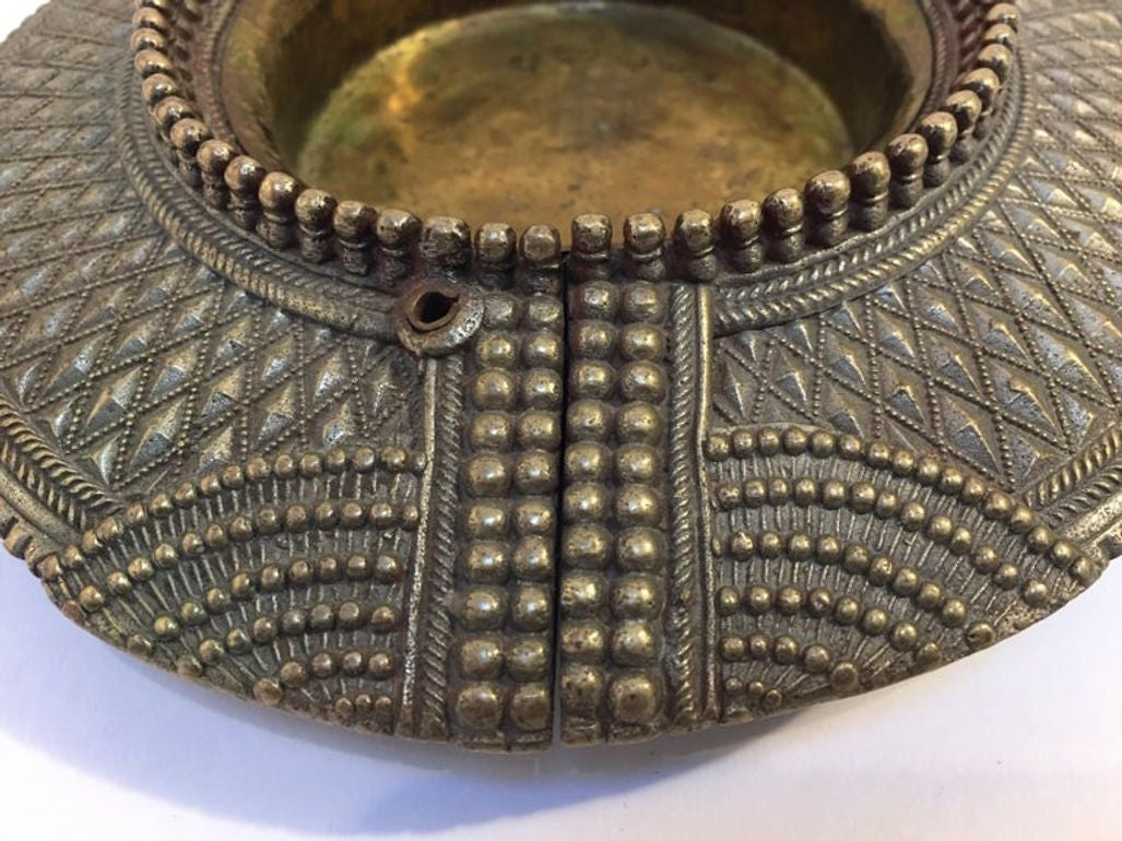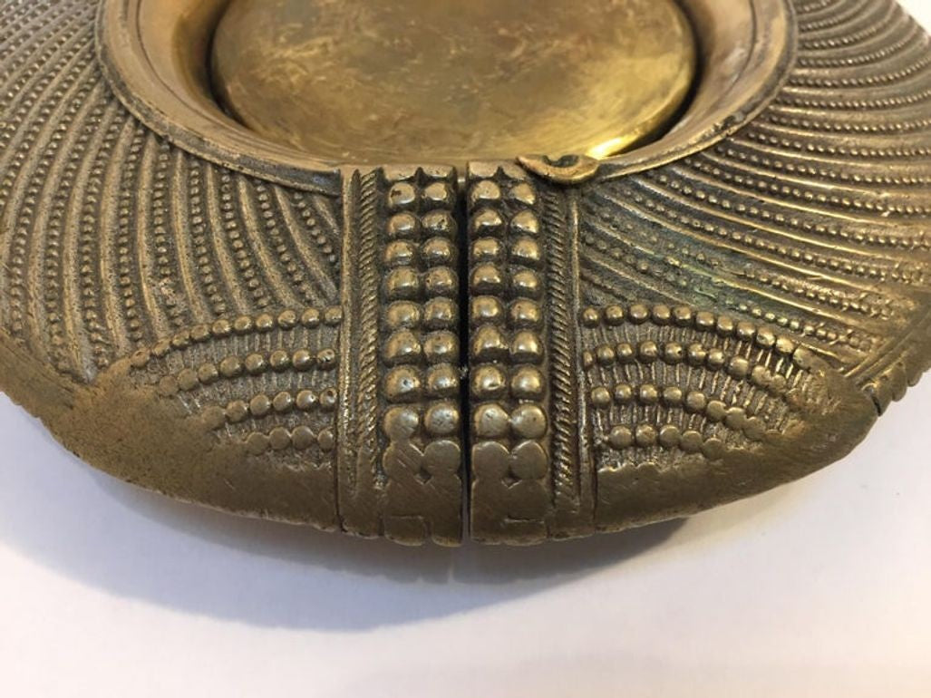 Dhokra art old ethnic tribal brass traditional anklet bracelet from India, repurposed as ashtrays or vide poche.