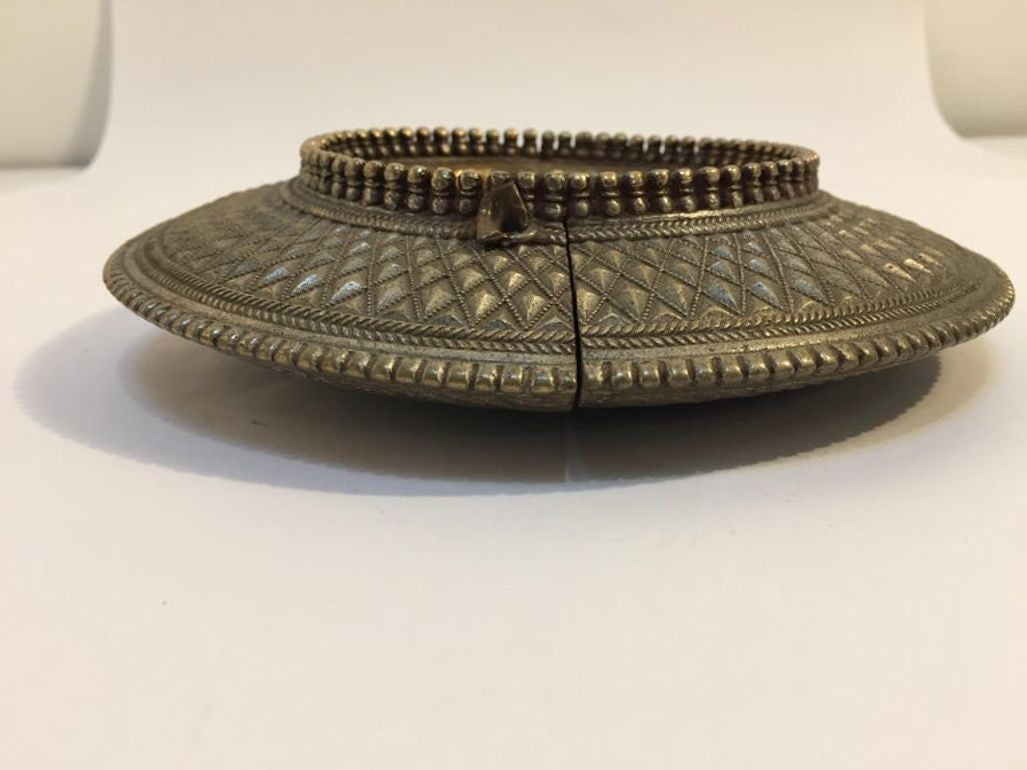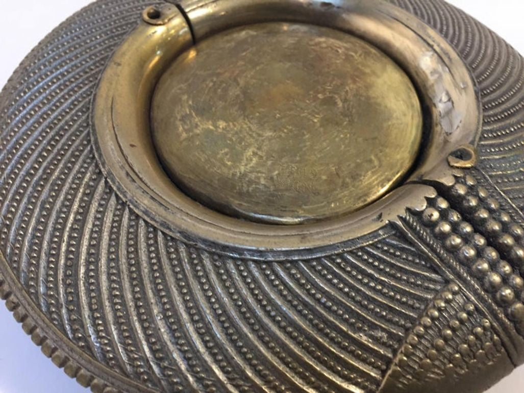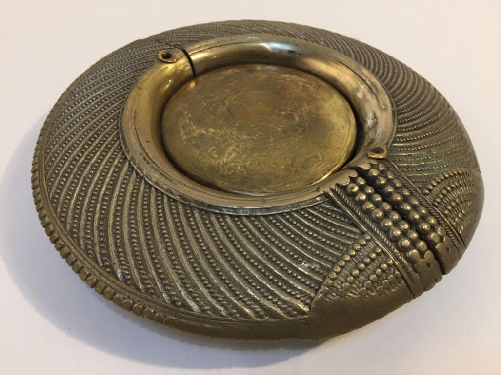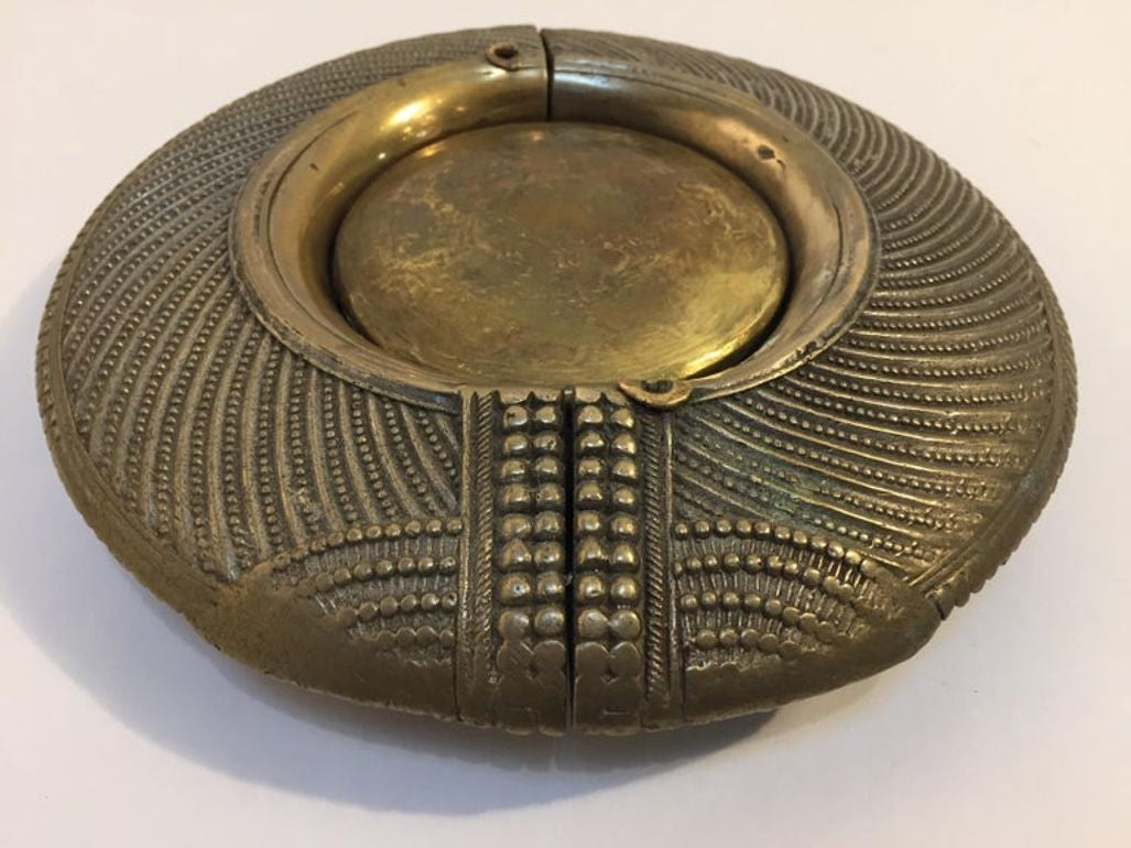 The brass inner plate was later added to use the bracelet as a small ashtray, vanity ring bowl.