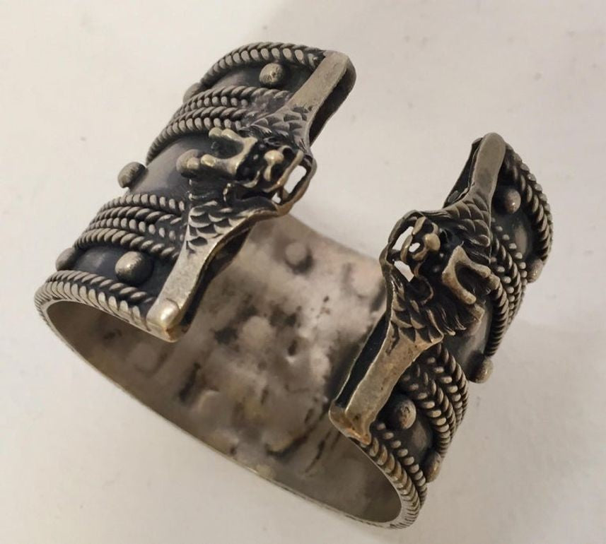 The ethnic Nomadic and Bedouin jewelry from the Maghreb and North Africa is usually made of german coin silver and the designs are full of symbolism to protect from the evil eye.